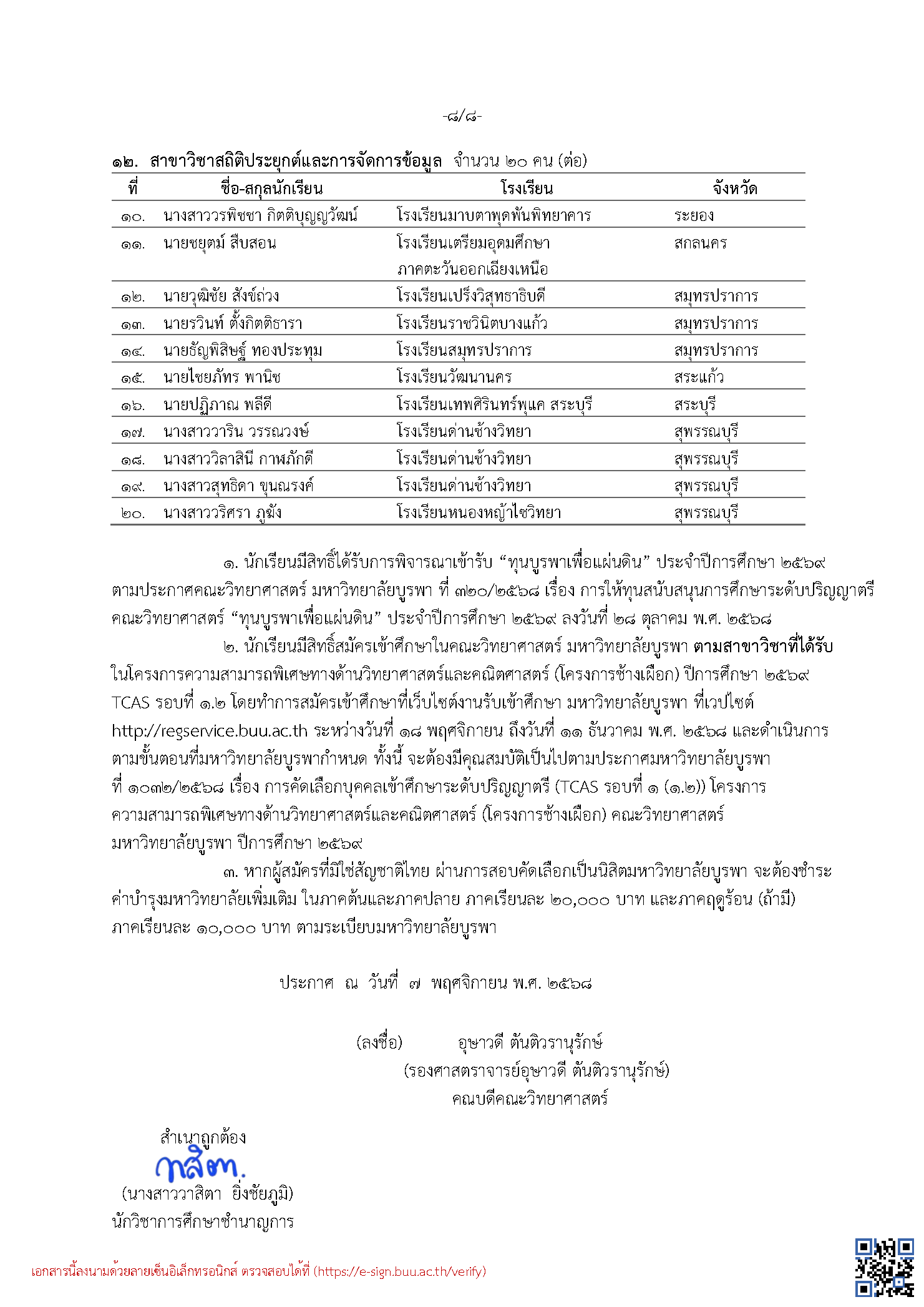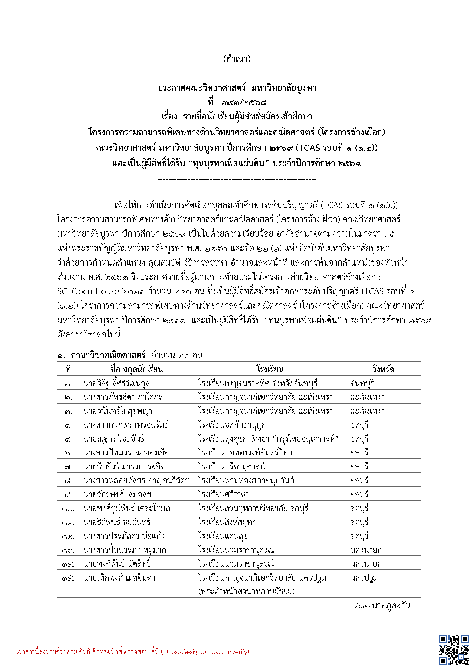 ประกาศรายชื่อผู้มีสิทธิ์สมัครเข้าศึกษาในโครงการช้างเผือก ปีการศึกษา 2569