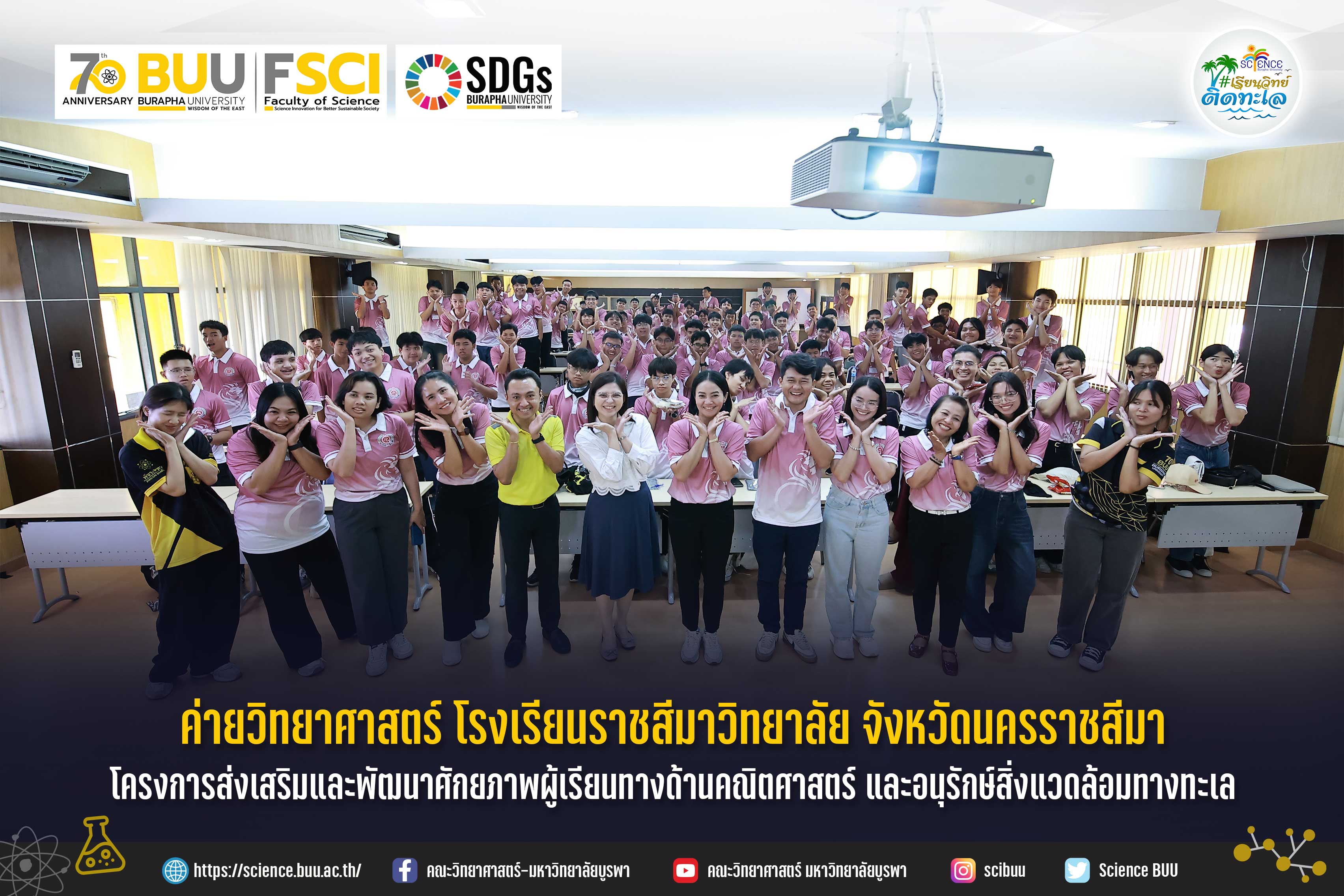 คณะวิทยาศาสตร์ มหาวิทยาลัยบูรพา ร่วมกับ โรงเรียนราชสีมาวิทยาลัย จังหวัดนครราชสีมา จัดโครงการบริการวิชาการ ค่ายวิทยาศาสตร์ โรงเรียนราชสีมาวิทยาลัย จังหวัดนครราชสีมา (โครงการส่งเสริมและพัฒนาศักยภาพผู้เรียนทางด้านคณิตศาสตร์ และอนุรักษ์สิ่งแวดล้อมทางทะเล) เมื่อวันที่ ๒๗-๒๙ กันยายน พ.ศ. ๒๕๖๘ ณ คณะวิทยาศาสตร์ มหาวิทยาลัยบูรพา โดยมีวัตถุประสงค์เพื่อส่งเสริมและพัฒนาศักยภาพของนักเรียนได้เรียนรู้และฝึกทักษะภาคปฏิบัติในห้องปฏิบัติการทางวิทยาศาสตร์ ที่สามารถนำความรู้และทักษะทางวิทยาศาสตร์ไปประยุกต์ใช้ในชีวิตประจำวัน อันจะก่อให้เกิดองค์ความรู้ทางวิทยาศาสตร์ใหม่ ๆ แก่นักเรียนที่เข้าร่วมโครงการ โดยมีกิจกรรมต่าง ๆ ดังนี้