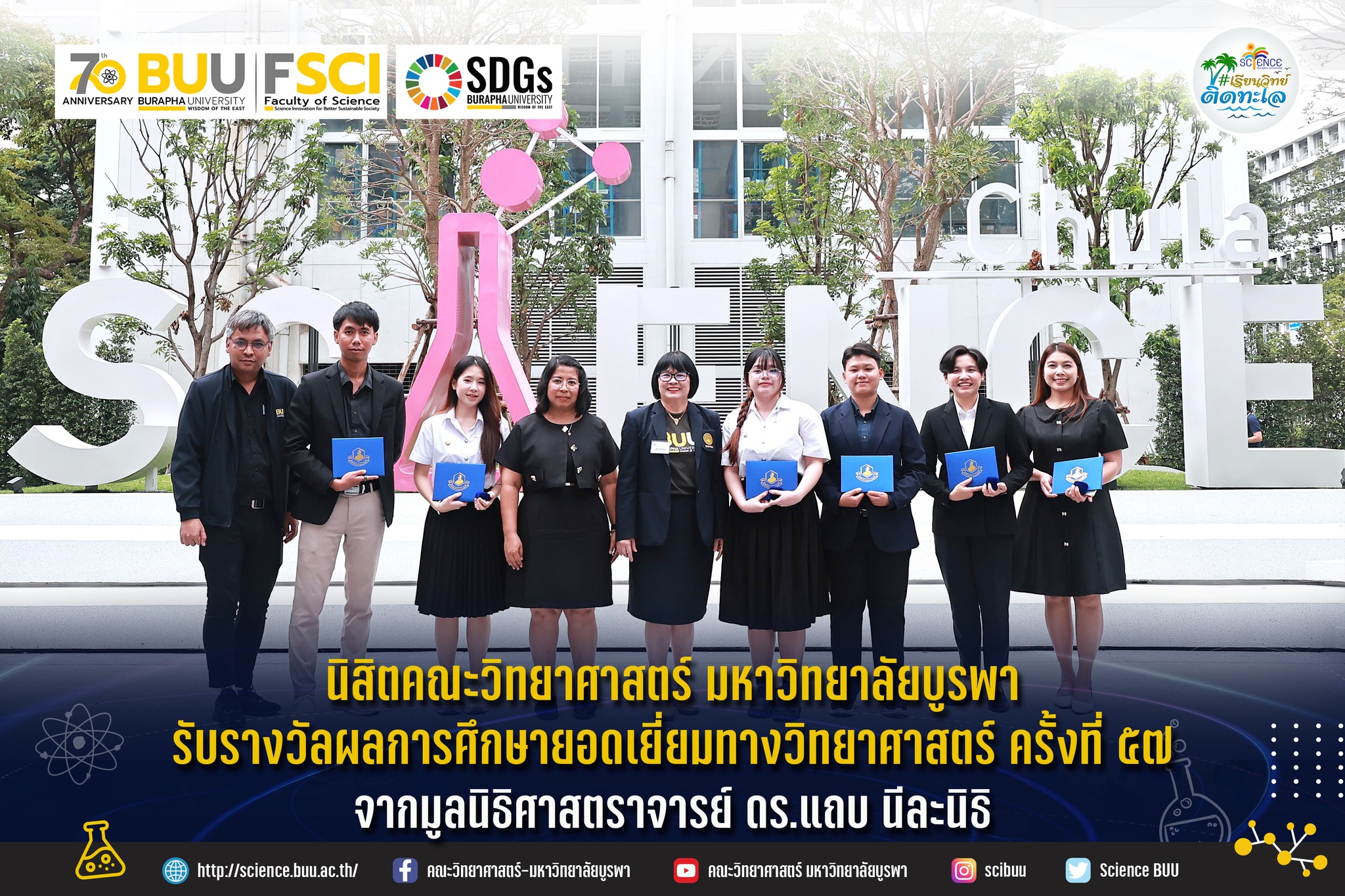 - นิสิตคณะวิทยาศาสตร์ มหาวิทยาลัยบูรพา เข้ารับทุนการศึกษาจากมูลนิธิศาสตราจารย์ ดร.แถบ นีละนิธิ ประจำปี พ.ศ. ๒๕๖๖