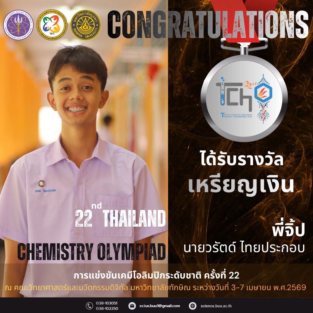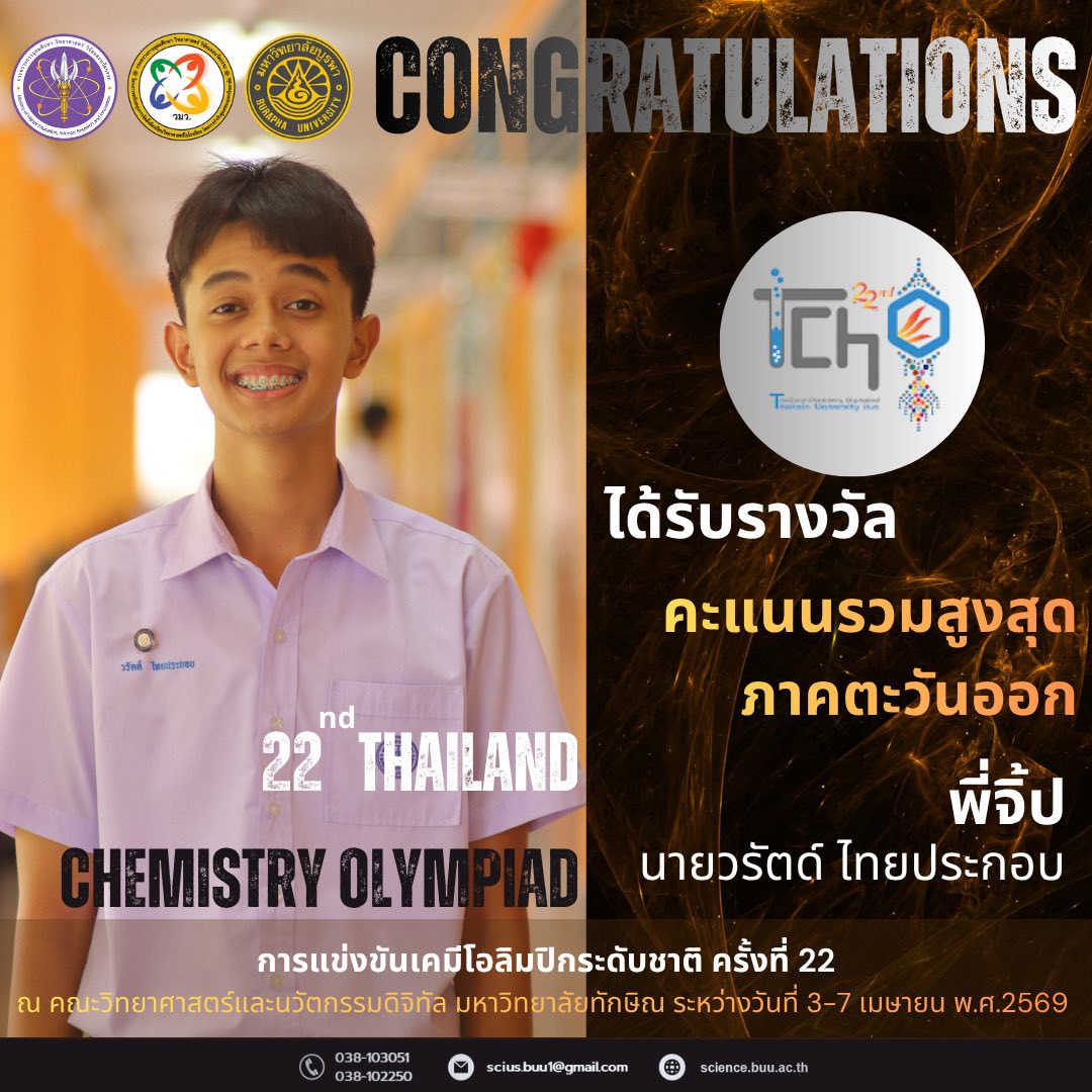 โครงการ วมว. ขอแสดงความยินดีกับนักเรียนที่ได้รับรางวัลเคมีโอลิมปิกวิชาการระดับชาติ ครั้งที่ 22 ณ คณะวิทยาศาสตร์และนวัตกรรมดิจิทัล มหาวิทยาลัยทักษิณ ระหว่างวันที่ 3-7 เมษายน พ.ศ.2569