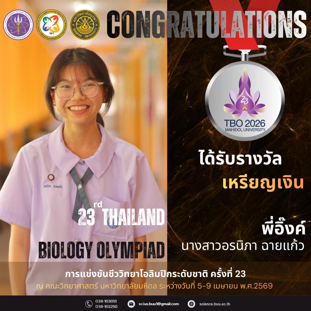 โครงการ วมว. ขอแสดงความยินดีกับนักเรียนที่ได้รับรางวัลในการแข่งขันชีววิทยาโอลิมปิกระดับชาติ ครั้งที่ 23 ณ คณะวิทยาศาสตร์ มหาวิทยาลัยมหิดล ระหว่างวันที่ 4-9 เมษายน พ.ศ.2569